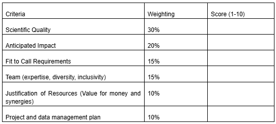 The evaluation panel will consist of the Network management team, advisory board members and invited experts, chaired by the network lead. Panel members will declare any conflict of interest in advance. They will independently evaluate the proposals, following the criteria above, and submit their scores in advance of the panel meeting. The panel will decide final scores and build a ranking for all proposals, to finalise which ones will be funded.